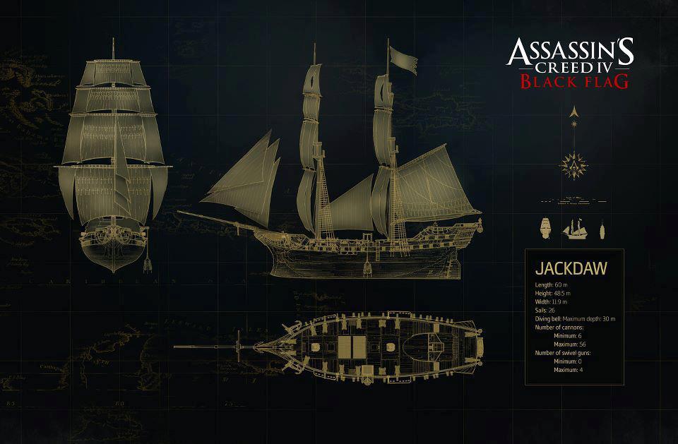 เรือ Jackdaw คือเรือของ Edward Kenway เป็นเรือที่มีความสำคัญมากเพราะใช้ปฏิบัติภารกิจหลายอย่างจนมีคนของ Ubisoft Montreal ถึงกับเปรียบเปรยว่าเรือนี้นั้นเป็นถึง “ผู้เล่นคนที่สอง” รองจากพระเอกของเราเลยทีเดียว