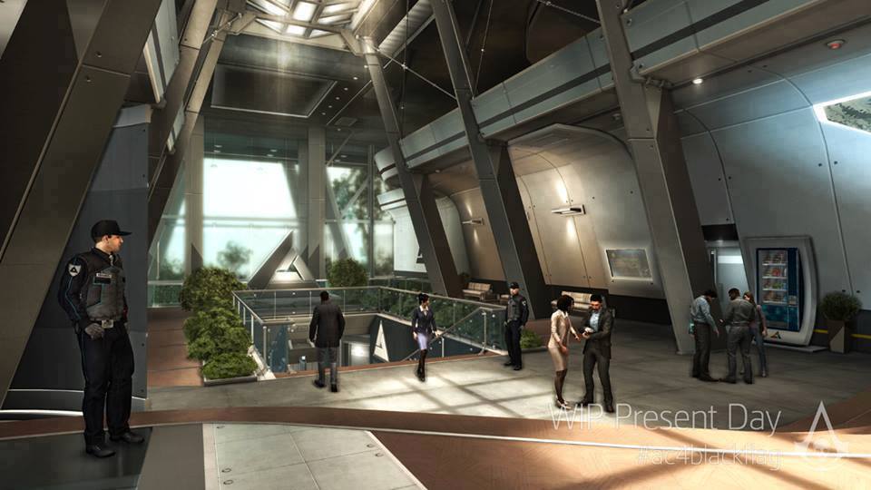 นอกจากนี้เรายังมีเรื่องสนุก ๆ ให้ทำอีกมากในส่วนของเนื้อเรื่องปัจจุบันด้วย คุณได้เห็นแล้วว่าบริษัท Abstergo Entertainment กำลังทำอะไรกับผลการค้นคว้าของคุณ คุณได้เห็นว่าพวกเขากำลังพยายามทำอะไรกันอยู่ ซึ่งมันดูน่าสนุกมาก มีบางอย่างที่เราแค่หยอกล้อวงการอุตสาหกรรมเกมและบริษัทผลิตเกมเล่น ๆ เรามีคู่มือพนักงานบริษัทของ Abstergo Entertainment ซึ่งมันเป็นเป็นแค่เรื่องตลก ๆ เกี่ยวกับคู่มือพนักงานของบริษัทเรา และยังมีอะไรสนุก ๆ อีกมากที่เราจะได้เจอ