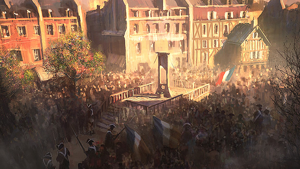 À la lanterne เป็นวลีที่นิยมใช้กันมากในช่วงปฏิวัติฝรั่งเศส คุณ Durand อธิบายว่า ในช่วงเวลานั้นชาวเมืองปารีสจะจุดโคมไฟใส่ตะแกรงที่แขวนไว้ตรงสถานที่ที่พวกเขาใช้ประหารชีวิตพวกขุนนาง (จขบ — ประโยคนี้ไม่รู้จะแปลยังไงดี แต่เท่าที่อ่านเรื่องการจุดโคมไฟนี่ก็เพื่อเป็นการแสดงออกถึงการประท้วงของชาวบ้านในขณะนั้นค่ะ โดยชาวบ้านจะจุดโคมไฟขึ้นเมื่อพวกเขาจะทำการลงประชาทัณฑ์หรือตัดคอพวกขุนนางที่ใต้โคมไฟที่จุดขึ้น) Arno จะมีภารกิจที่ต้องเกี่ยวข้องกับเหตุการณ์นี้ การที่ใครสักคนถูกส่งไปตายทั้ง ๆ ที่เป็นแค่ขุนนางคนหนึ่งนั้นมันฟังดูขัดกับหลักจริยธรรม “เมื่อคุณกำลังเล่นเกม เป้าหมายของเราไม่ได้ต้องการให้ Arno เป็นพวกหัวปฏิวัติจ๋า หรือเป็นพวกแอนตี้การปฏิวัติ” คุณ Durand กล่าว “เราต้องการให้ผู้เล่นแสดงออกได้ทั้งสองอย่าง โดยให้ตัดสินใจเองว่าอะไรถูก อะไรผิด”