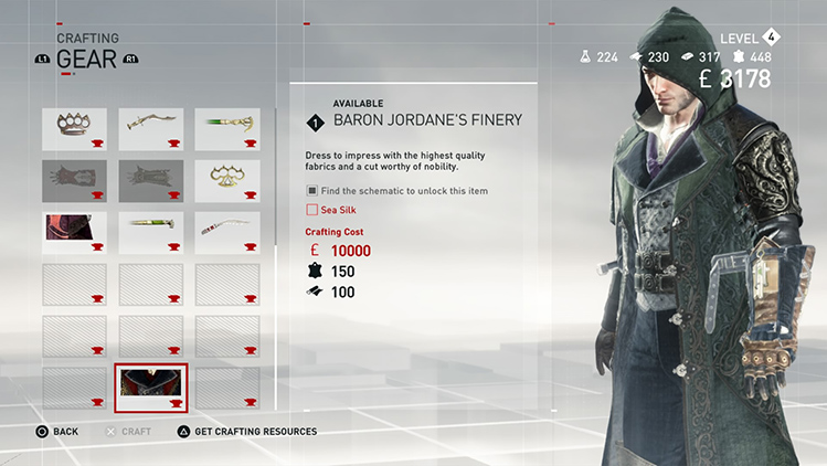 ตอบ ที่เราสามารถประดิษฐ์ได้เช่น ชิ้นส่วน อาวุธ การอัพเกรดอุปกรณ์ต่าง ๆ เช่น กระเป๋าเก็บระเบิดและยาเพิ่มชีวิต ในการที่จะประดิษฐ์ของบางชนิดเราจะสามารถหาชิ้นส่วนได้จาก หีบสมบัติทั่วแผนที่ หรือได้รับหลังจากทำภารกิจสำเร็จ หรือได้มาจากพันธมิตรของเรา นอกจากนี้เรายังสามารถอัพเกรดทักษะที่ช่วยในการหาแหล่งชิ้นส่วนเพิ่มเติมได้ด้วย นั่นคือ Scavenger ability จะเป็นทักษะที่ช่วยให้เราหาหีบสมบัติได้มากขึ้น ไม่เพียงเท่านี้ การที่จะได้ชิ้นส่วนที่หายากนั้นเราจำเป็นต้องเพิ่มระดับความภักดี (Loyalty Level) ของพันธมิตรของเราด้วย เพื่อที่จะได้ชิ้นส่วนหายากมา ชิ้นส่วนสิ่งประดิษฐ์ของเราไม่เพียงแต่สามารถนำมาใช้ทำอุปกรณ์เท่านั้นแต่ยังสามารถนำไปทำอย่างอื่นได้อีก เช่น ใช้เป็นส่วนลดในการซื้อไอเทม ติดสินบนตำรวจ ทำลายรถม้าและอาวุธของฝั่ง Templar เพิ่มความแข็งแกร่งให้แก๊ง The rooks ของเรา และอื่น ๆ อีกมาก