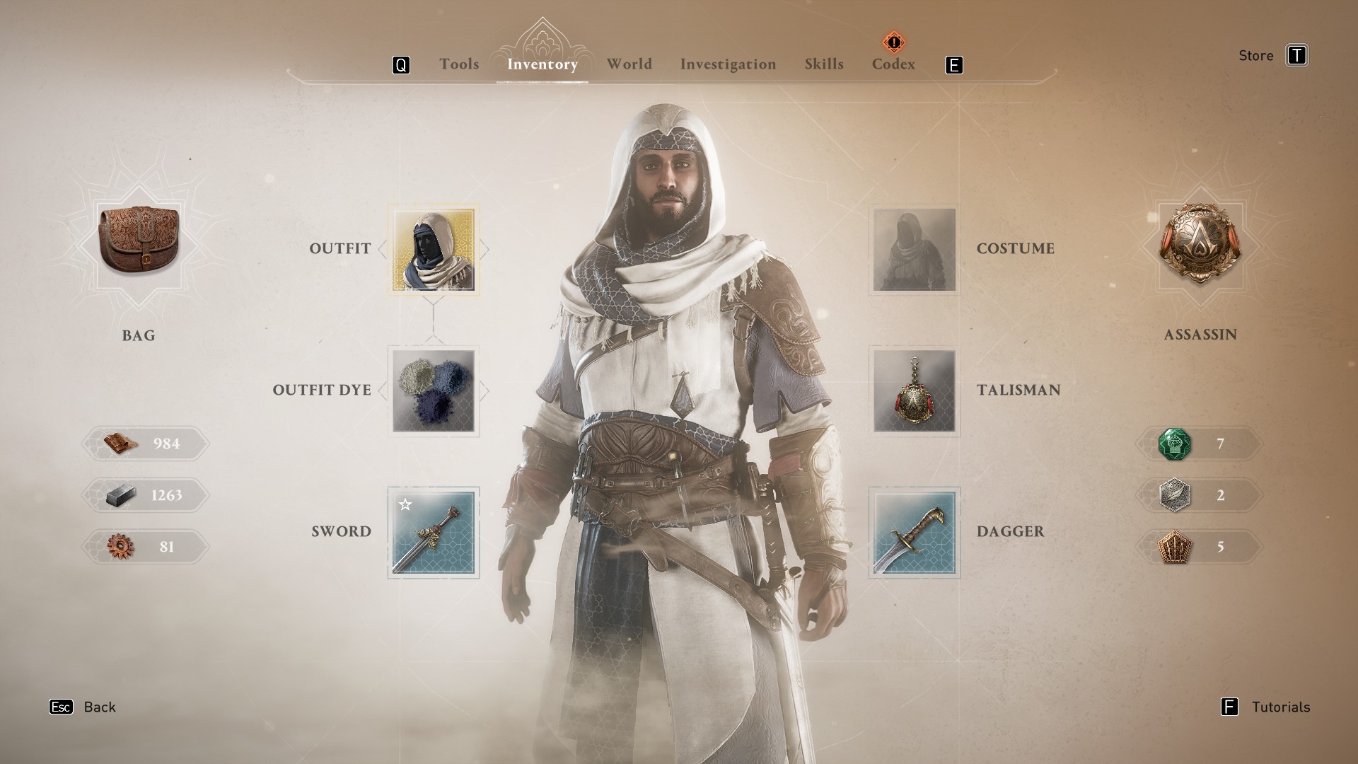 คล้ายกับภาคที่ผ่านมา Basim สามารถถืออาวุธได้ 2 อย่างคือดาบ และมีดสั้น เปลี่ยนไปถืออย่างอื่นไม่ได้อะ เช่น โล่ หอก หรือ ดาบอีกอัน